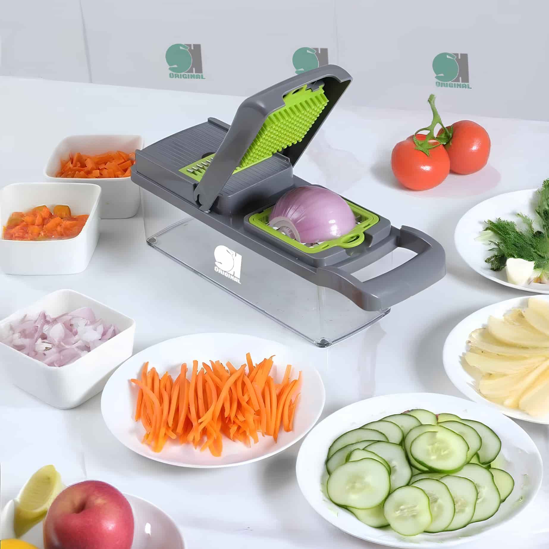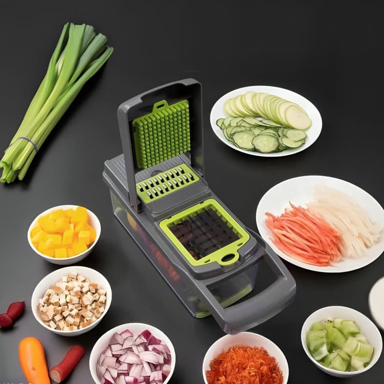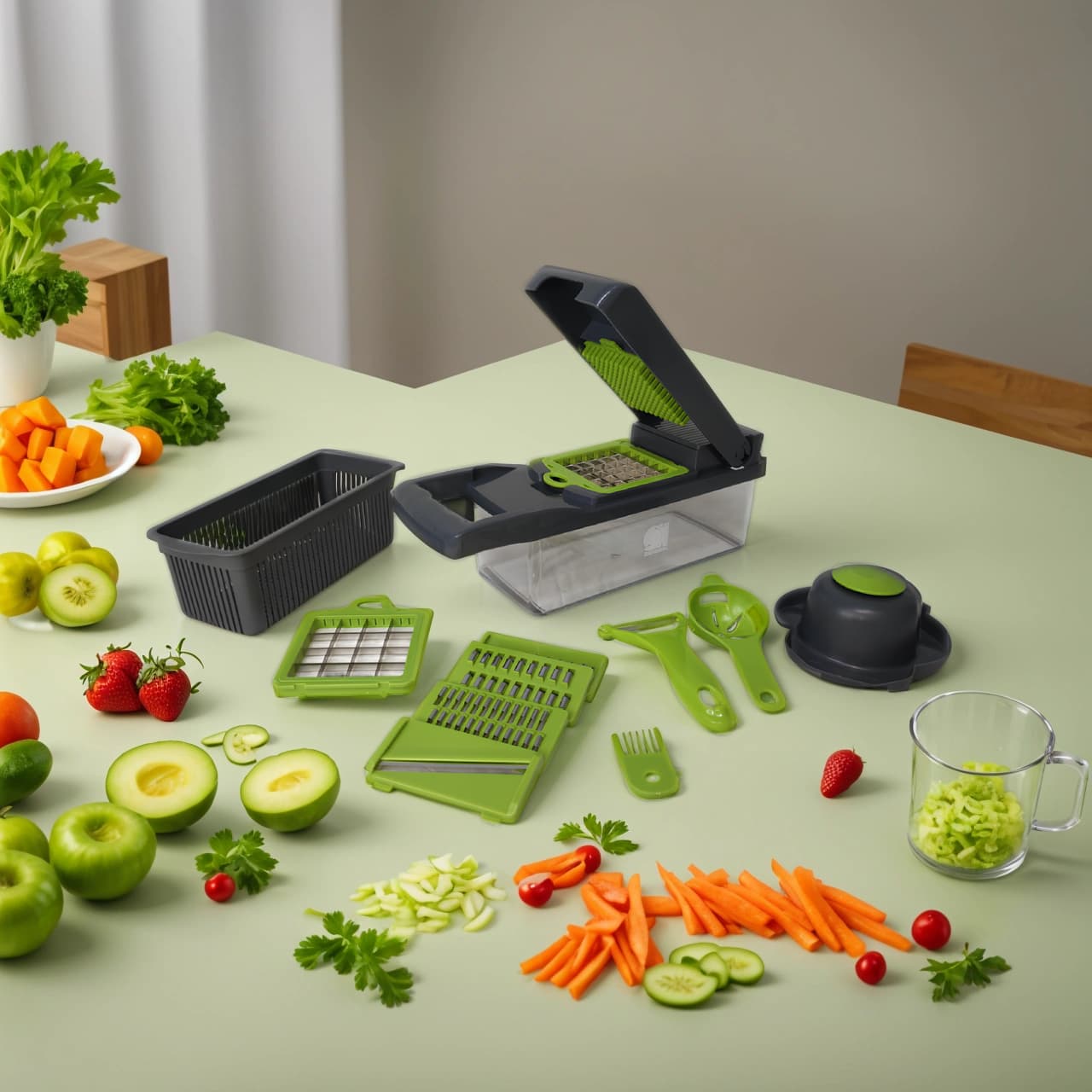 Geht’s noch einfacher? Gemüseschneider, Würfelschneider, Wellenschneider, Gemüsereibe & Eeirtrenner in Einem!